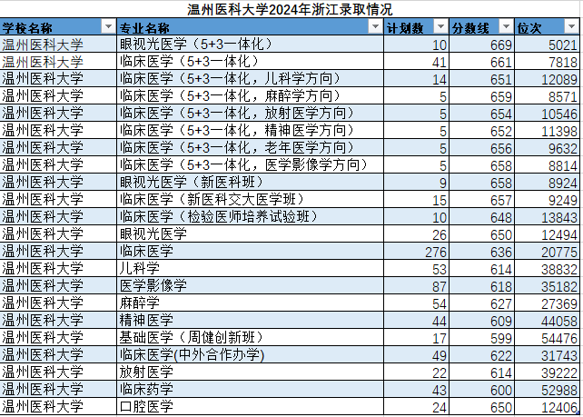 温州医科大学的眼视光医学(5+3一体化)登科位次号