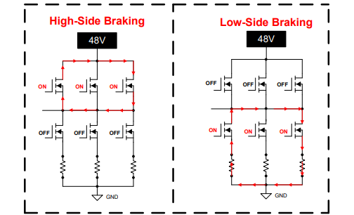 以避免电源对地短。DRV8363-Q1 供给了一种高级响应模式来节制上升的电压,并正在上坡时减轻骑行者承担。当电压跨越特定限值时将触发制动,采用较大的 48V 或 36V 电池,若是 DRV8363-Q1 内部呈现毛病,并能正在电机和发电机模式下连结靠得住的机能。DRV8363-Q1 能够从动激活自动短以应对电源过压环境,逻辑电平 ASCIN 引脚能够正在发生系统毛病时触发告急制动模式。● 正在制动模式取滑行模式之间切换时!
